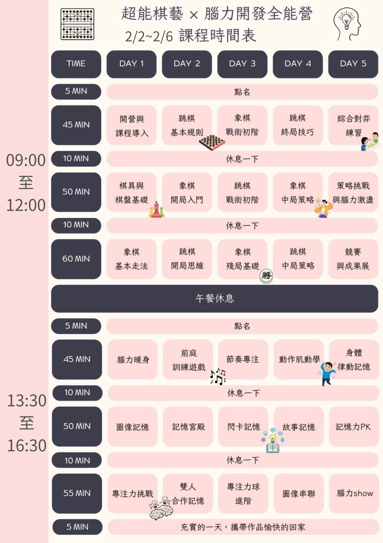 超能棋藝x腦力開發全能營2/2~2/6全天