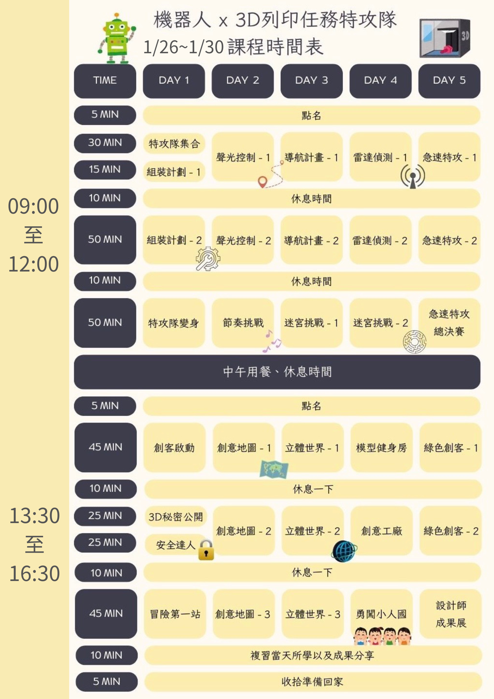 機器人x3D列印任務特攻隊1/26~1/30全天