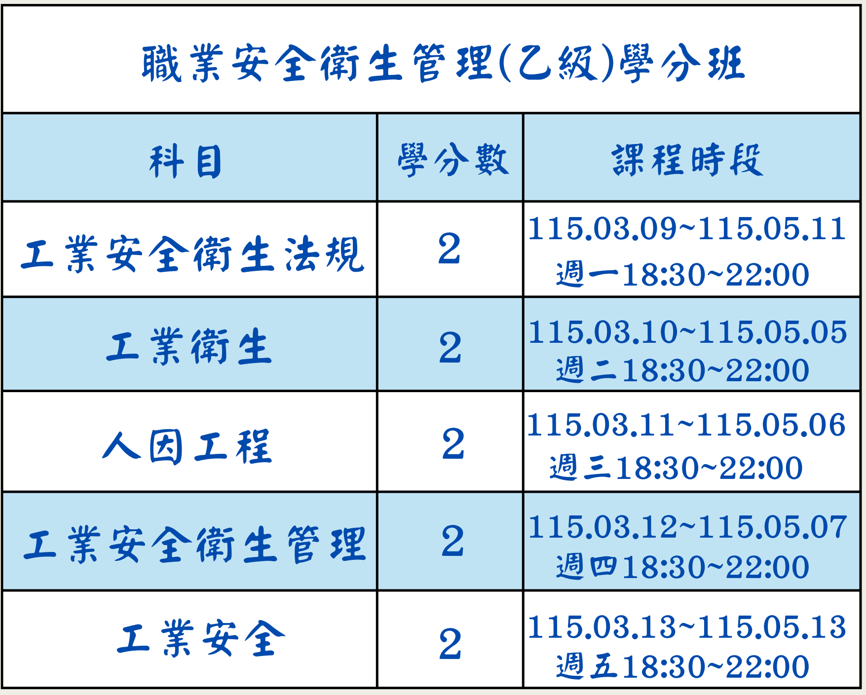 【2026技能檢定】職業安全衛生管理(乙級)學分班(07期)*遠距教學