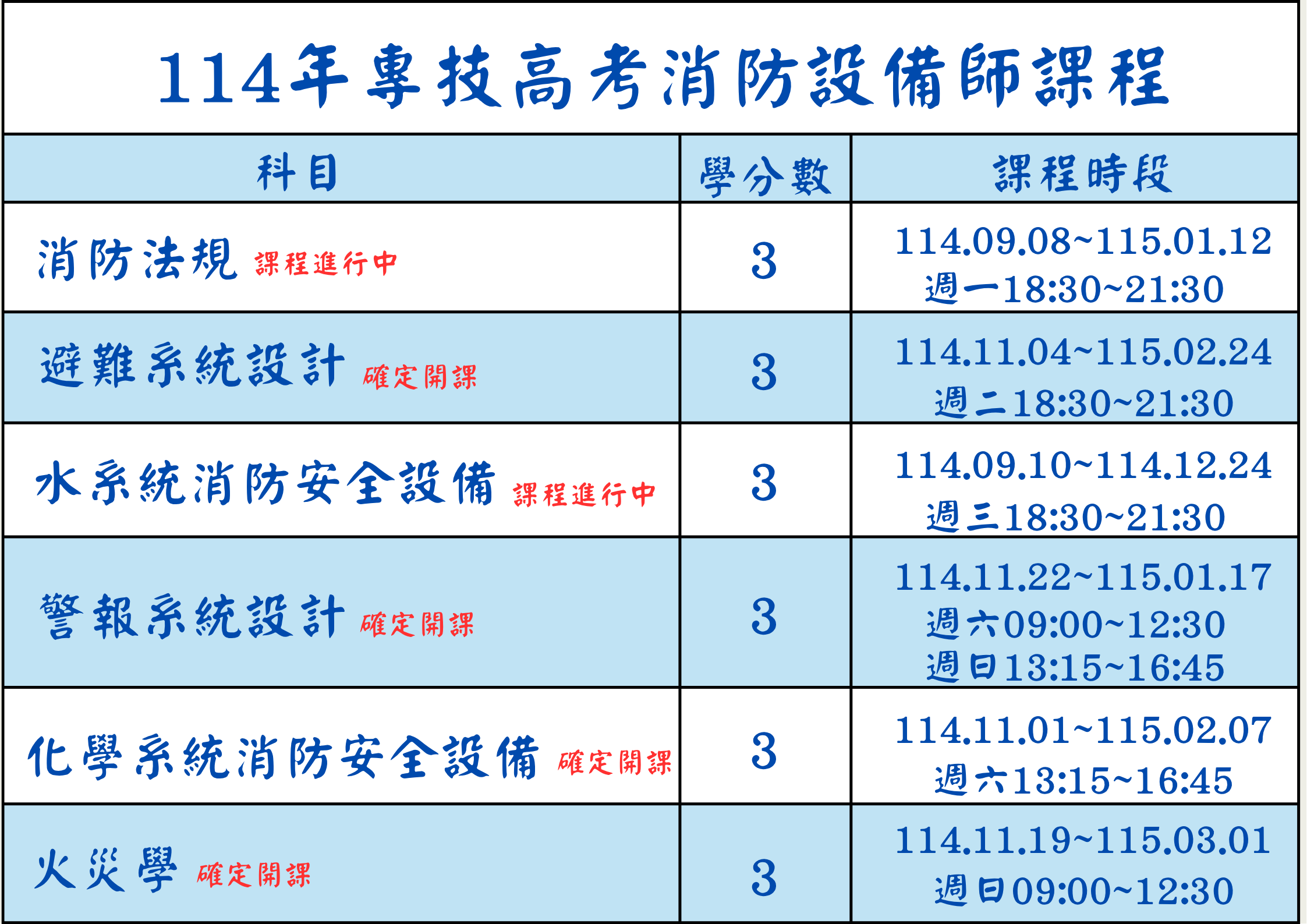 本課程主要為協助有意從事相關消防設備業務人士取得技師證照外,依學士學分班課程規定完成修業,核發本校推廣教育學分證明書。